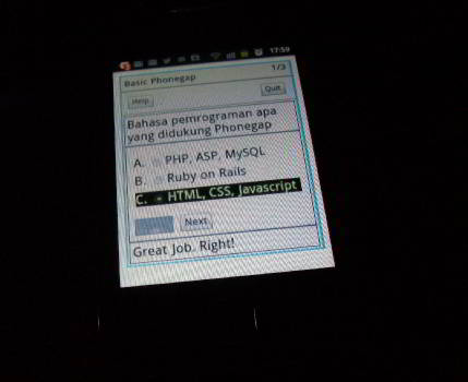- Nama aplikasi : Kuis Phonegap