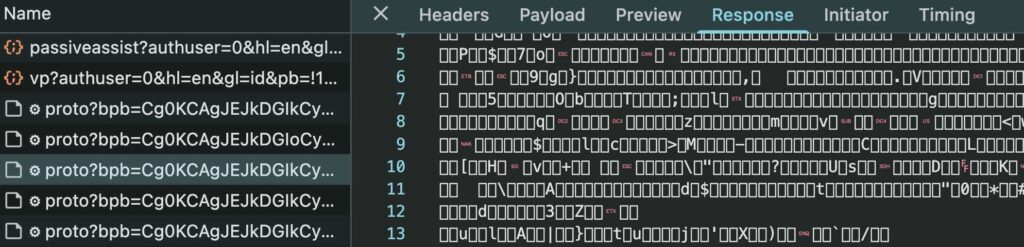 • sebagian besar request muncul sebagai /proto?bpb=...