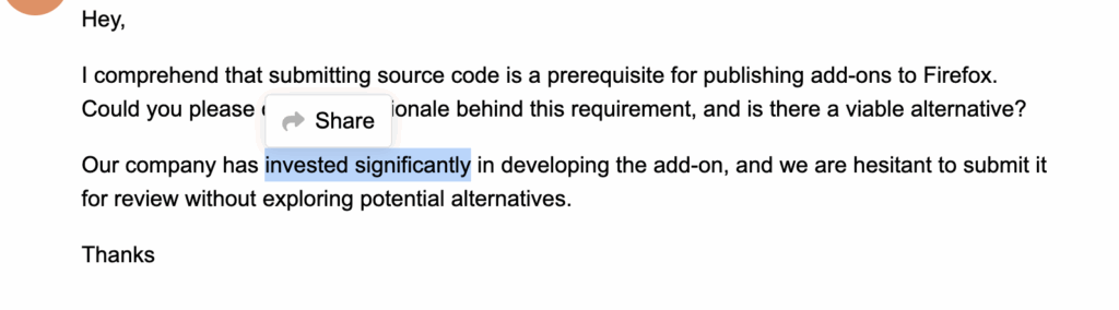 Bagaimana jika sebuah extension memiliki business logic bernilai yang sengaja di-minify (bukan di-obfuscate), bukan untuk menyembunyikan perilaku, tetapi untuk melindungi desain dan algoritma internal?