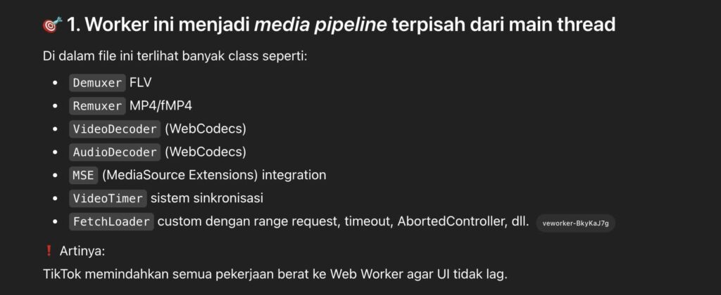 Ternyata, setelah membaca dua file raksasa (veworker-xxxxx.js dan ttplayer-plugin-xxxxx.js), TikTok Live memang punya dua engine: