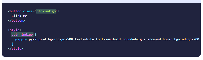 Salah satu fitur kunci dari Tailwind yang saya sukai adalah, dia memiliki directive CSS untuk menghindari penulisan inline class yang terlalu panjang. Contohnya seperti berikut ini: